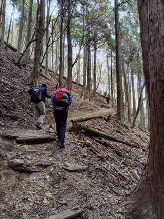 前回来た時の登山道についてはまったく記憶はないが、意外に広くて登りやすい。先週の青梅丘陵の道の方が険しいくらいであった。