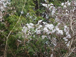 下山道は子持山、大持山へと続く稜線になるが、結構きつい下りであった。寒い中、小さな花をいっぱいつけた木があった。