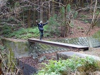 登山道の終点で小さな橋を渡って朝登っていた道路に出る。そのまま下って登山口の神社に到着したときは午後の3時前であった。
