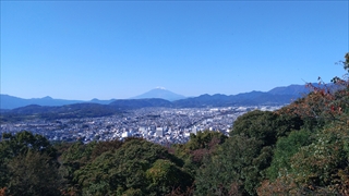 川を渡ってほどなく歩くと右手に標識がでてきて、道から下りて山裾にはいったところが登山口であった。ここから階段が続くが山登りが苦手なKさんに気を使いながらゆっくり登る。やがて傾斜がなだらかになり浅間山に着いた。ここから富士山が望め、皆さんは見とれていたが、ここより次の権現山の展望台からばっちり富士山が望めるのでそこそこ休憩して権現山に向かった。