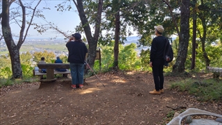 弘法山で一番見晴らしのよいところで、いつきてものんびりしたくなる。職場での日頃のうっぷんを晴らしたり、完全リタイヤしたIさんの報告を聞いたり、コーヒーを飲みながらパンなど軽食をとる、私は下山したところで食事という思いがあったので、昼食など何も持ってこなかった。みんな食べているのを見ているとやはり小腹が空いてきたので、Iさんからパンを分けてもらった。