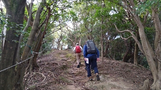 急な坂であったが段々なだらかになりやがて横山に到着。そこからまたどんどん下ってほぼ市街地と同じ標高になったところが横山峠、そこから徳倉山へはそれこそ一直線に登る急坂。手すりとともに鎖やロープがあり、途中に平らなところはいっさいなし。