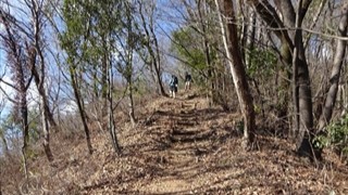 沢山の落ち葉を踏みしめながら高度をあげていきます。登り始めは林の中のため展望はなく、歩くこと約1時間で虎丸山に到着した。古ぼけた社があったが景色はといえば木々の間から遠方の山々が見える程度。ここでは登頂写真だけを撮り次の目的地に向かう。