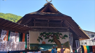 「山人家」では特製豚丼を食べたが、豚丼もさることながら「きのこけんちん」が美味しかった。昼飯を食べ終わったが檜枝岐歌舞伎が3時から開園ということでまだ時間の余裕がある。ただ混んでいそうなので、駐車場を確保するためにキャンプ場からさっそく車で出かける。幸い村役場に駐車できて、そこから歩いて檜枝岐歌舞伎の会場に行くとすでに長い行列が出来ていた。
