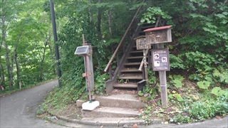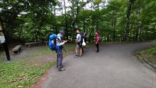 前日朝早くから運転したせいか、はたまた夕食のビールが効いたのか7時ごろには寝て目を醒ましたら4時半であった。外はまだ暗いがさっそく身支度して車で登山口の駐車場に向かう。道路には時折車が通り過ぎる。登山口にある駐車場は20台くらいしか停められないのでなるべく早く行かねばならない。檜枝岐の道路からだと滝沢登山口まで30分以上かかるので、駐車場確保は重要である。はたして、登山口付近の駐車場は満杯、Uターンして少々下ったところに駐車場があるので、そこに停めることが出来た。キャンプ場のマスターから教えてもらったとおりであった。あたりは明るくなり、すでに多くの登山者がすでに出発している。こちらも登山靴に履き替えてさっそく出発。約10分程で滝沢登山口に到着した。