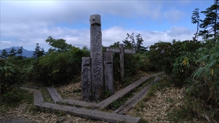 山頂は背の低い松の木で囲まれていて眺望はあまり良くない。ここでは記念写真だけ撮って中門岳を目指す。