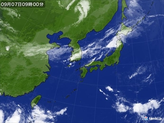 ■9/7(日) 日の出 05:18, 日の入り 18:03 28.4℃/14.5℃ 西南西 0.9m/s