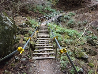 登山道の終点で小さな橋を渡って朝登っていた道路に出る。そのまま下って登山口の神社に到着したときは午後の3時前であった。