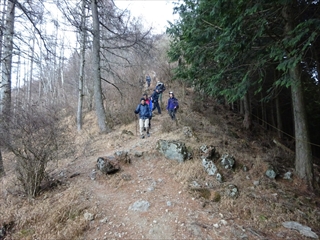前回来た時の登山道についてはまったく記憶はないが、意外に広くて登りやすい。先週の青梅丘陵の道の方が険しいくらいであった。