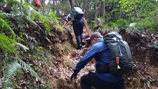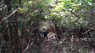香貫山からの道はどんどん下り最後は道路に出た。結局登った分だけ下りてきた感じである。道路をしばらく歩くと右手に沼津アルプス登山口という標識を見つける。香貫山からの下りで、ひとりのおじさんからこの先は大変よと言われたが、確かに登山口からいきなり急登が始まる。