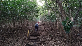 毎年大学ワンゲル部の同期会が開かれるが、今年は沼津の「KKRはまゆう」で開催されることとなった。そこで宿の裏手にある山が沼津アルプスということがわかり、ネットで調べると標高も200~300mとそんなに高くはなく、途中すぐに市街地に下りるエスケープルートもあり、同期会の連中に提案したところ私を含め4名の有志で登ることとなった。