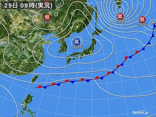 天気図、衛星画像 日本気象協会より転載、気象データ:気象庁@河口湖(山梨県)