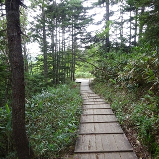朝5時に自宅を出たがやはり曇り空。始発電車で北千住で例の東武鉄道リバティー1号を待っているとNさんがやってきた。特急電車とはいえ会津田島駅まで3時間、隣席なのでしゃべりながらだったので退屈さはまぎれた。特急電車は意外にも空いていて、会津田島駅で下りて尾瀬行のバスを待っている登山者は数人といったところであった。ここから沼山峠まで約2時間。いやはや長い道中である。幸い雨は降っていないが、あいかわらず曇り空であった。