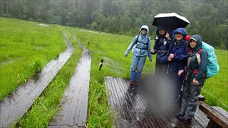 とはいえ今回は雨の山行ではあったが、それなりに自然を味わった。それに雨で滑りそうな木道歩きで結構慎重に歩いたせいか翌日は足の筋肉の筋というかへんなところが痛かった。
