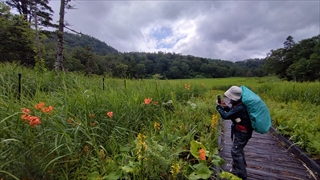 遅い昼食を終えさらに進むと御池田代に出る。ここでは柵が設けられ、中に入るといろいろな花を鑑賞することが出来た。雨も止んでいてしばし花の撮影に勤しむ。