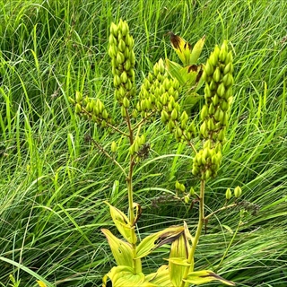 登山道は尾瀬特有の木道であるが、りっぱな木道が緩やかに沼山峠まで続いている。峠を過ぎてしばらくすると広大な湿原に出た。大江湿原である。空はどんよりしているが見晴らしがよくなって気持ちが明るくなる。湿原を進むとところどころ黄色や紫の花が咲いている。水芭蕉、ニッコウキスゲは季節がすでに終わっているが、夏の花であるオグルマ、ギボウシ、バイケイソウなど結構咲いていた。ゆっくり写真を撮りながら草原の散策を楽しむ。