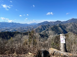 下り、登りを繰り返し途中には馬頭観音や夫婦岩があった。尾続道に出ると中央線の山々が見える。先日山火事のあった扇山はどこか確認したりしながら能岳を目指す。