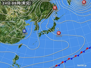 天気図、衛星画像 日本気象協会より転載、気象データ:気象庁@大月(山梨県)