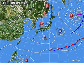 天気図、衛星画像 日本気象協会より転載、気象データ:気象庁@府中(東京都)